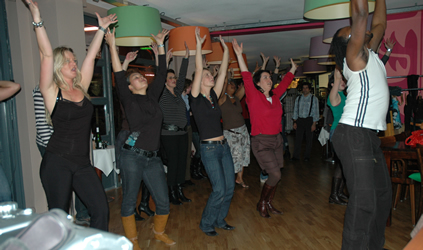 Gaandeweg de workshop worden de passen en combinaties ingewikkelder tot we aan het eind van de workshop tot een choreografische dans komen.
